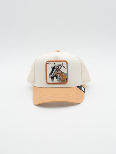 Gorra estilo Trucker con parche bordado de Goorin Bros Gorra estilo Tucker con visera curva y estructura Beige con tejido satinado y estapado co...