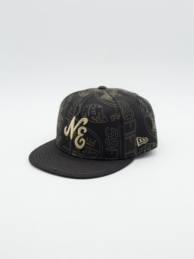Gorra 59fifty del 59Fifty day de New Era Gorra fitted con visera plana y estructura Negra con bordados de New Era con hilo dorado por toda la gor...
