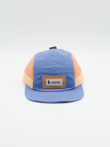 Gorra estilo 5 paneles de Cotopaxi Gorra estilo 5 paneles con visera plegable plana Colores violetas, azules y naranjas Logo Cotopaxi estampado e...
