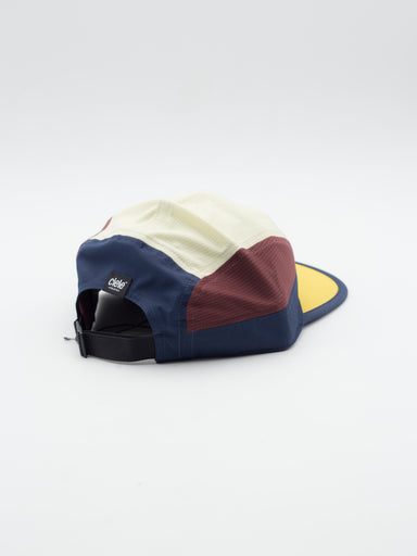 Gorra estilo 5 paneles de Ciele Gorra estilo 5 paneles con visera plegable plana Color amarillo, granate y azul marino; visera amarilla y azul ma...