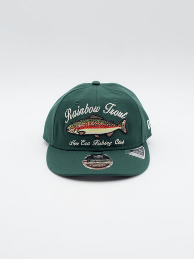 Gorra estilo 6 panel de New Era Gorra estilo 6 panel con corona retro-crown y con visera curva Verde Bordado de trucha junto con "Rainbow Trout"...