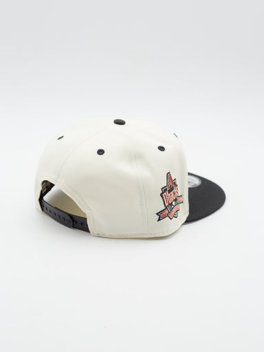 Gorra estilo snapback de Arizona Diamondbacks de New Era Gorra estilo snapback con visera plana Corona blanco roto, visera negra y undervisor gri...