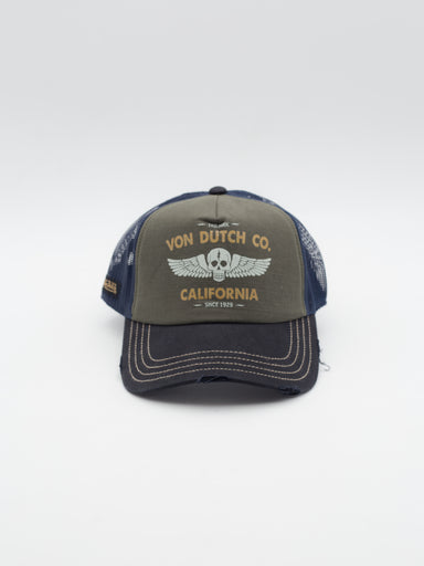 Gorra estilo trucker de Von Dutch Gorra estilo trucker con visera curva y estructura Frontal verde, visera gris y rejilla navy Logotipo "Von Dutc...