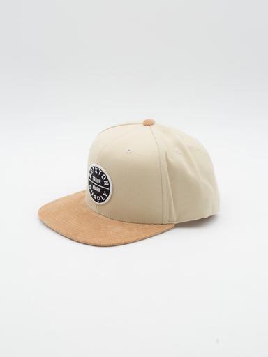 Gorra estilo Snapback y parche bordado de Brixton. Gorra estilo Snapback con visera Plana. Corona arena y visera marrón de tejido de pana Logotipo...