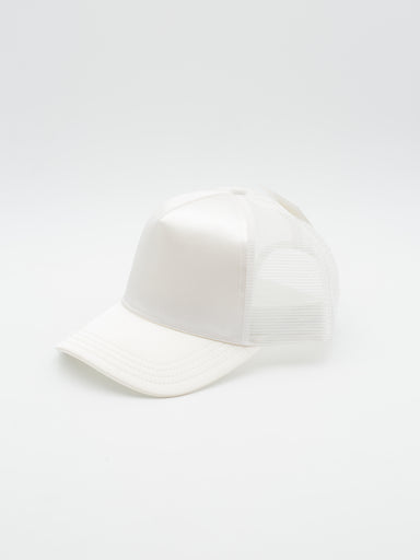 Gorra estilo trucker de 5 paneles de Atlantis Gorra tipo trucker de 5 paneles con visera curva y estructura Blanca, frontal y visera de tejido sat...