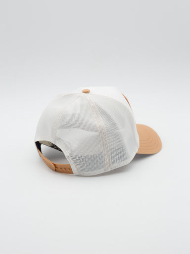 Gorra estilo trucker con parche bordado de Goorin Bros Gorra estilo trucker con estructura y visera curva Corona y rejilla blanca, visera marró...