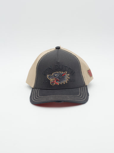 Gorra estilo trucker de Von Dutch Gorra estilo trucker con estructura y visera curva Negra con rejilla beige Bordado de "Von Dutch" con lobo bord...