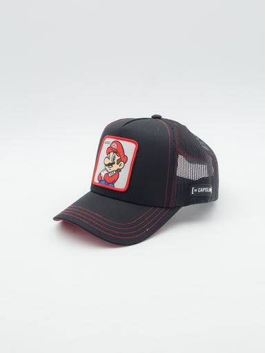 Gorra estilo Trucker de Super Mario Bros con parche bordado de Capslab Gorra estilo Tucker con visera curva Negra Logotipo "Mario Bros" en el fr...
