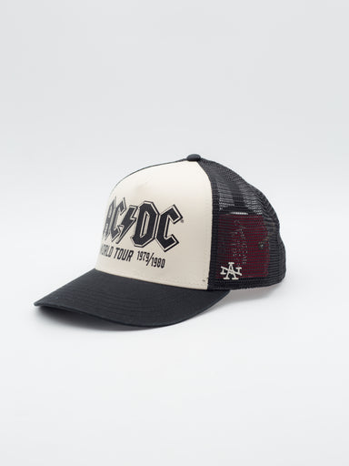 Gorra estilo Trucker con parche bordado de American Needle Gorra estilo trucker con visera curva Frontal beige, visera y rejilla negra Estampado ...