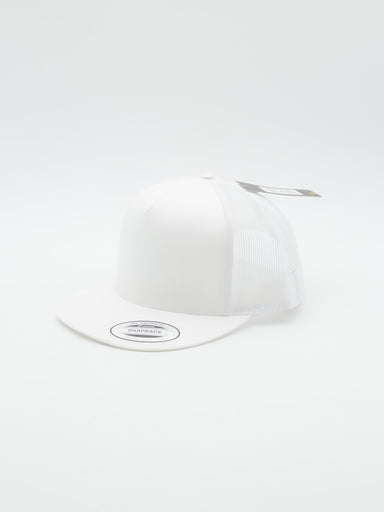 Gorra tipo trucker de Flexfit Gorra tipo trucker snapback con visera plana y estructura Blanco 50% Algodón 50% Polyester Ajustable, cierre Snapback