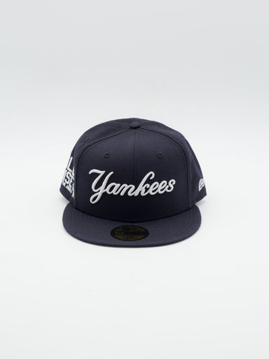 Gorra 59fifty de los New York Yankees de New Era Gorra fitted con estructura y visera plana Navy Logotipo "New York Yankees Script" y bordado ...