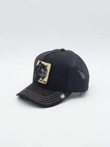 Gorra estilo Trucker con parche bordado de Goorin Bros Gorra estilo Trucker con visera curva Negra con tacto de ante; suede Logotipo pantera P...