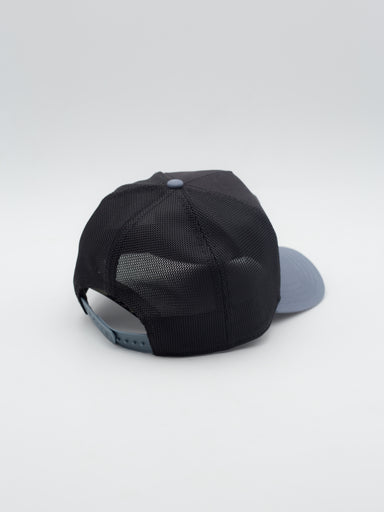 Gorra estilo trucker con parche bordado de Goorin Bros Gorra estilo trucker con estructura y visera curva Corona y rejilla negra, visera gris L...