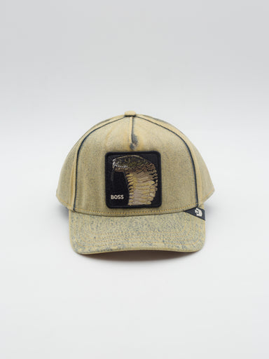 Gorra estilo trucker con parche bordado de Goorin Bros Gorra estilo tucker sin rejilla con estructura y visera curva Denim lavado amarillo Logo...