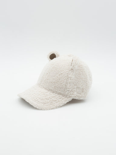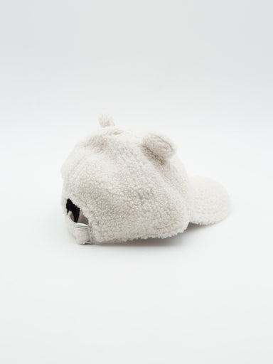 Gorra New Era de tiburón para niños entre 6 y 12 años Gorra de borrego con visera curva orejitas Crema Orejas bordadas y bandera New Era en el la...