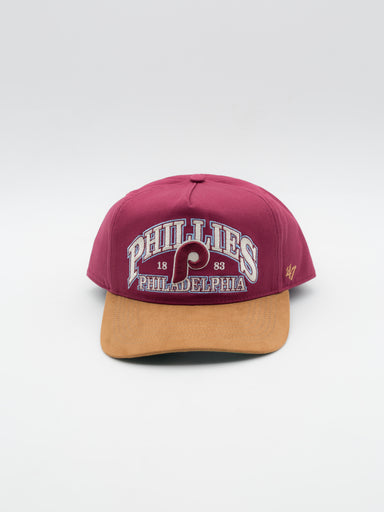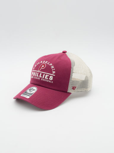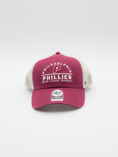 Gorra estilo trucker de Philadelphia Phillies de 47 Brand Gorra estilo trucker con visera curvada y sin estructura Frontal y visera granate y rej...