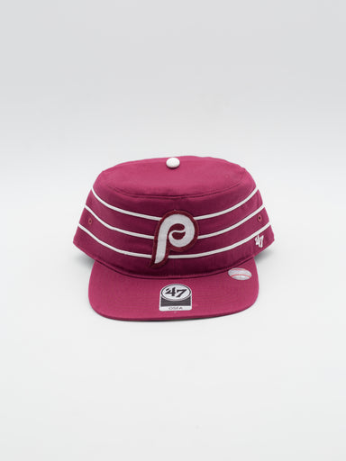 Gorra estilo pillbox de los Philladelphia Phillies de 47 Brand Gorra estilo pillbox con estructura y con visera plana Granate con undervisor verd...