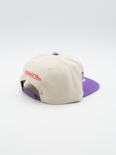Gorra estilo snapback de los Toronto Raptors de Mitchell & Ness Gorra estilo snapback con visera Plana Corona crema y visera violeta Script d...