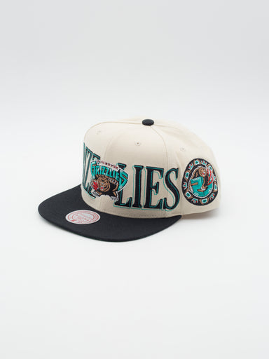 Gorra estilo snapback de los Vancouver Grizzlies de Mitchell & Ness Gorra estilo snapback con visera Plana Corona crema y visera negra Script...