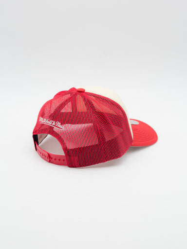Gorra estilo trucker de Chicago Bulls de Mitchell & Ness Gorra estilo trucker con visera curva y estructura Frontal blanco, rejilla y visera n...