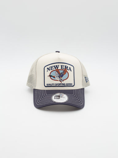 Gorra 9Forty de New Era con rejilla. Gorra trucker con visera curva y frontal estructurado Frontal y rejilla beige y visera navy Parche bordado e...
