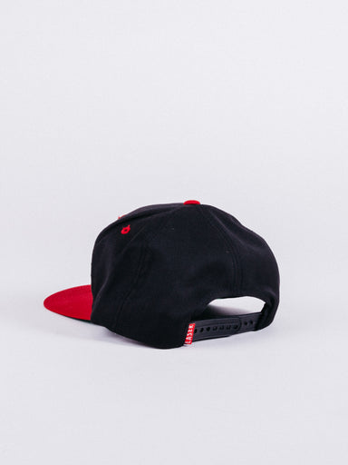 Gorra tipo snapback de flexfit Gorra tipo snapback de 6 paneles con visera plana y estructura Corona negra con la visera de piel sintética de ave...