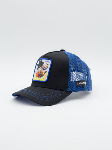 Gorra estilo Trucker con parche bordado de Capslab Gorra estilo Tucker con visera curva Negra. Logotipo de Dragon Ball Z Goku en el frontal ...