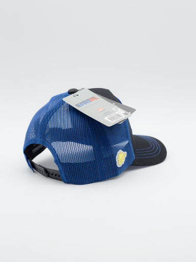 Gorra estilo Trucker con parche bordado de Capslab Gorra estilo Tucker con visera curva Color negro con costuras en Azul Logotipo de Naruto en e...