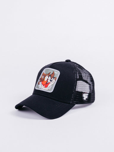 Gorra estilo Trucker con parche bordado de Capslab Gorra estilo Trucker con visera curva. Negra. Logotipo de Looney Tunes Taz Black Trucker en e...