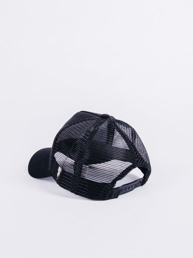 Gorra estilo Trucker con parche bordado de Capslab Gorra estilo Trucker con visera curva con Parche bordado de Capslab. Negro Frontal con diseño ...