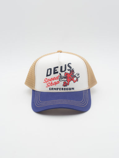 Gorra estilo trucker de Deus Ex Machina Gorra estilo trucker con estructura y visera curva Frontal blanco, visera azul oscuro y rejilla marrón...