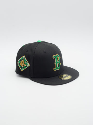 Gorra 59fifty conmemorativa de San Patricio de Boston Red Sox de New Era Gorra fitted con visera plana Negra con detalles verdes Logotipo "Boston...