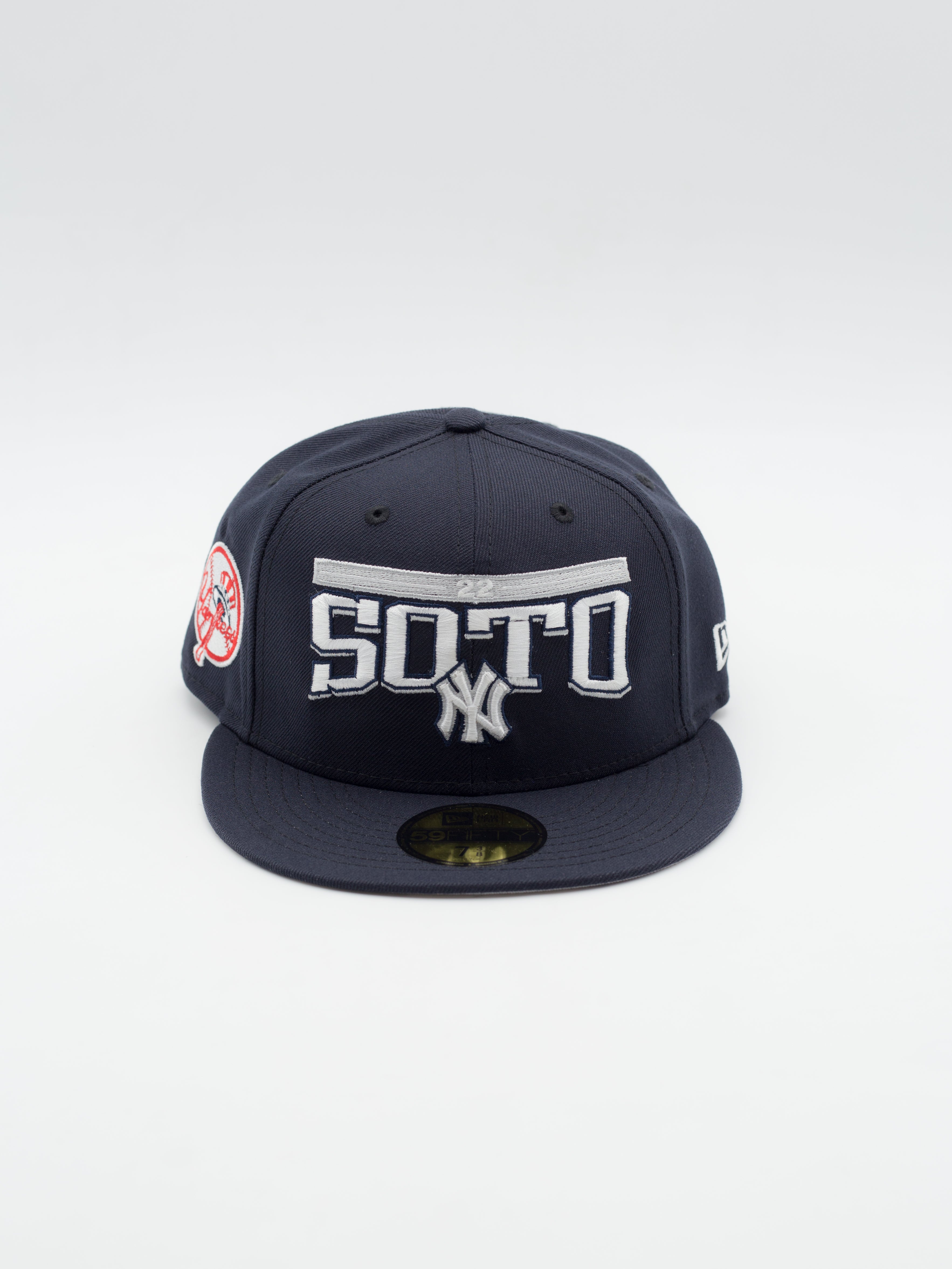 - Logotipo "New York Yankees" y "Soto 22" bordado en la parte delantera, parche lateral y logotipo "NE" en el lateral