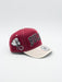 - Corona granate y visera beige con pespuntes decorativos en la visera y corona