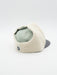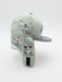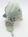 - Corona y orejeras verde pálido, visera gris, undervisor rosa y orejeras beige