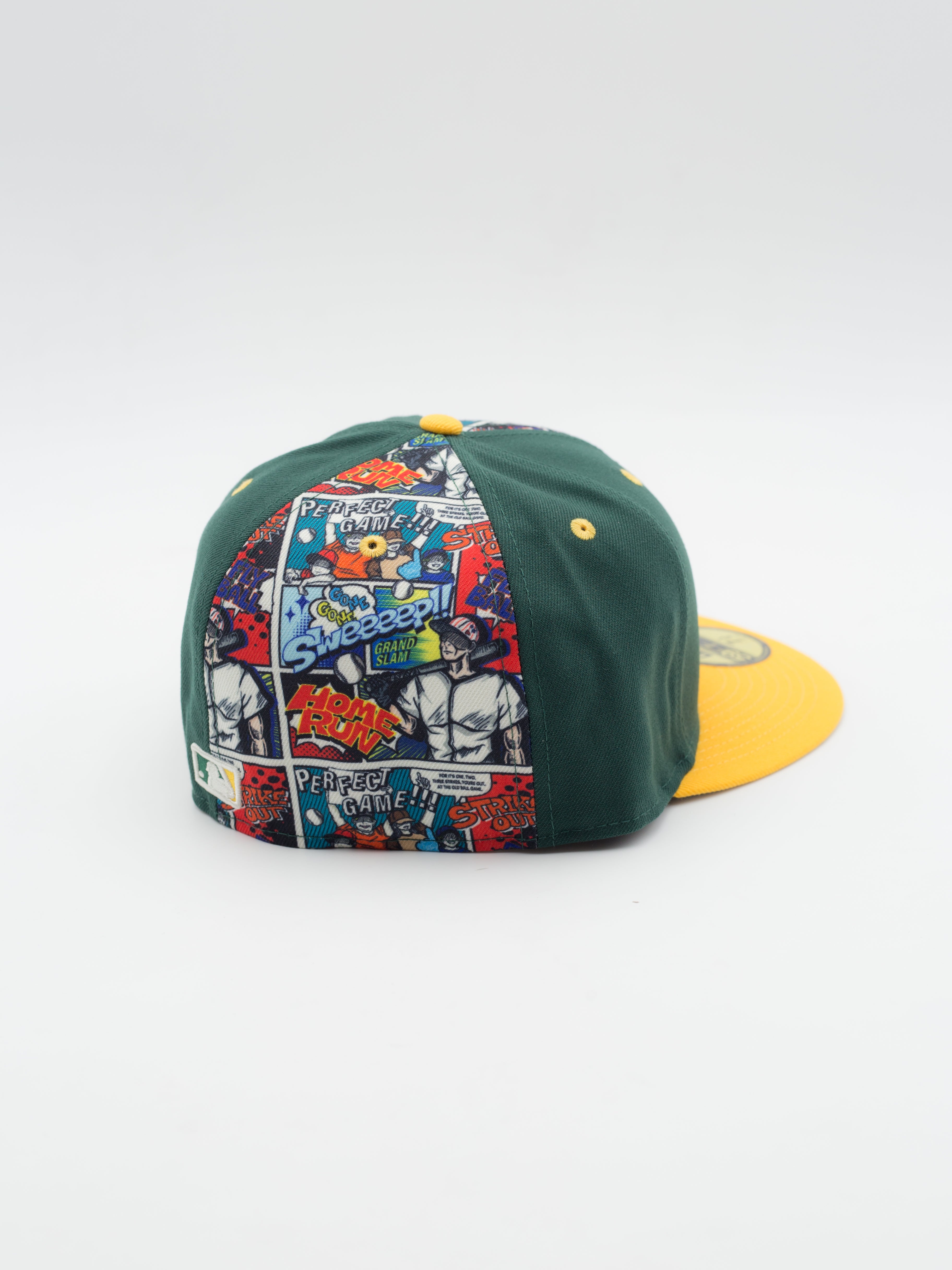 - Logotipo "Oakland Athletics" bordado en la parte delantera junto con motivos de comics y logotipo "NE" bordado en el lateral