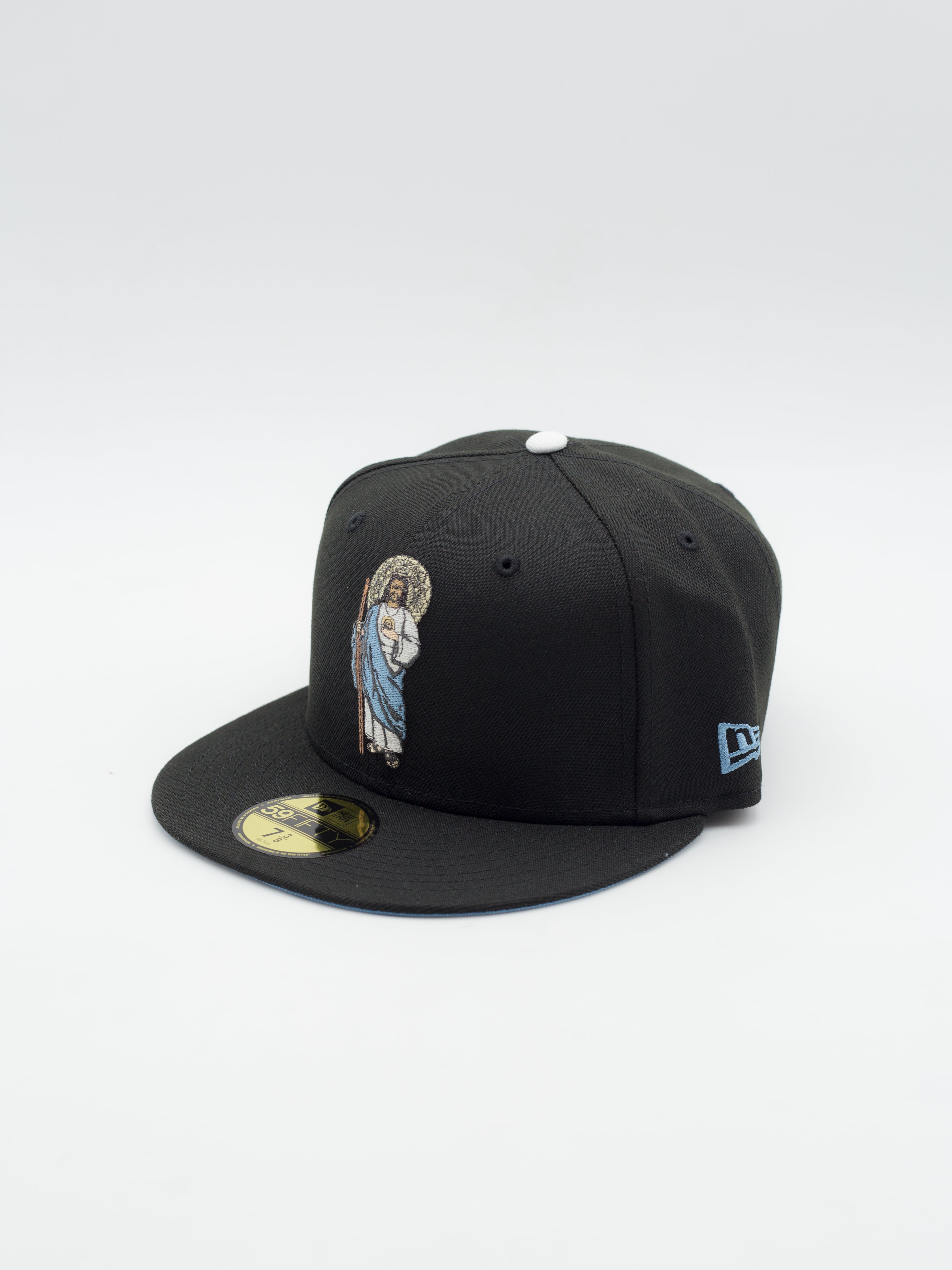 - Imagen de San Judas Tadeo bordada en la parte delantera, parche bordado en el lateral y logo "NE" bordado en el lateral y trasero