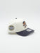 - Corona beige y visera azul marino, navy.