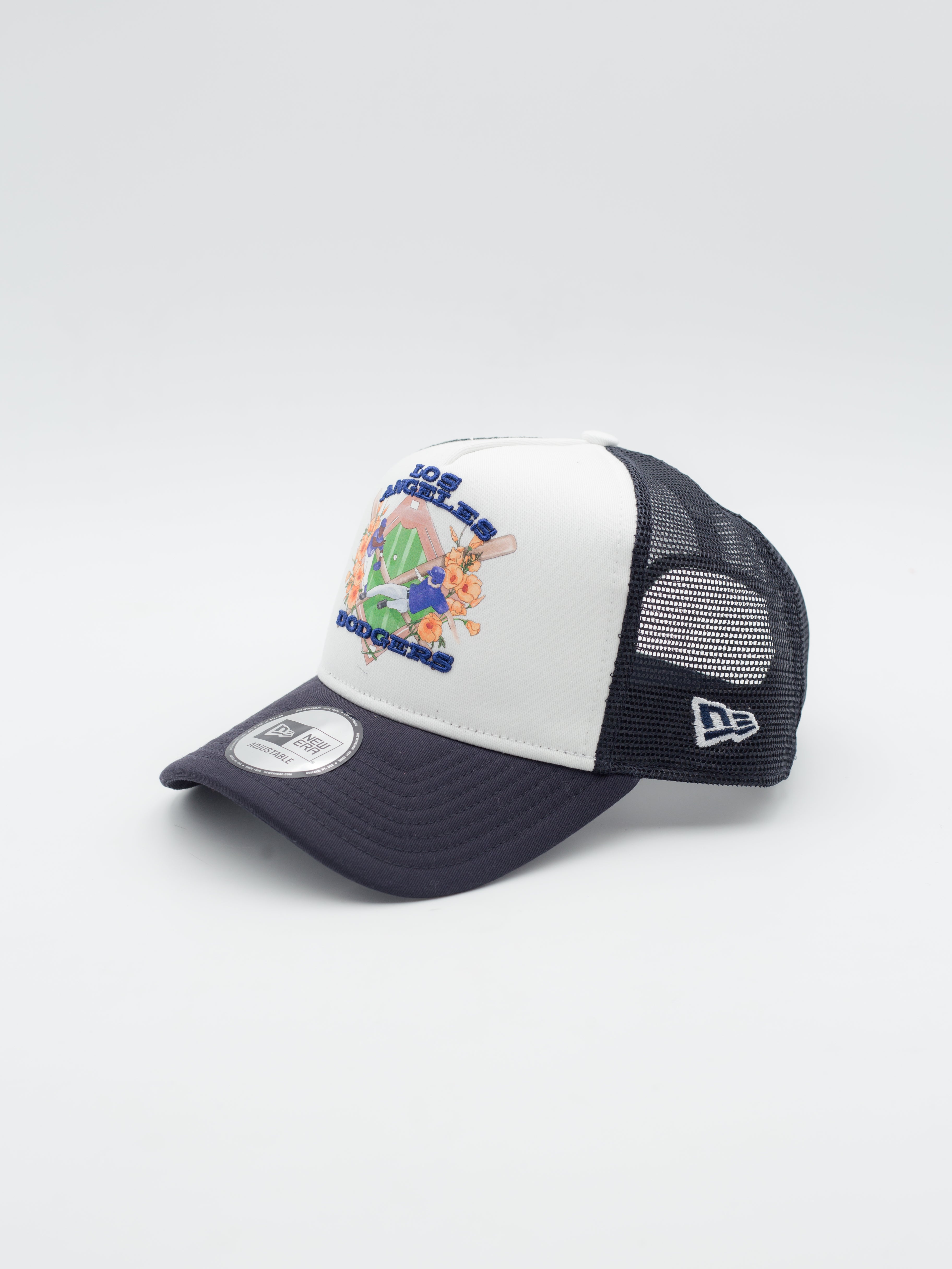 - Gráfico floral "Los Angeles Dodgers" en el frontal y logo NE bordado en el lateral