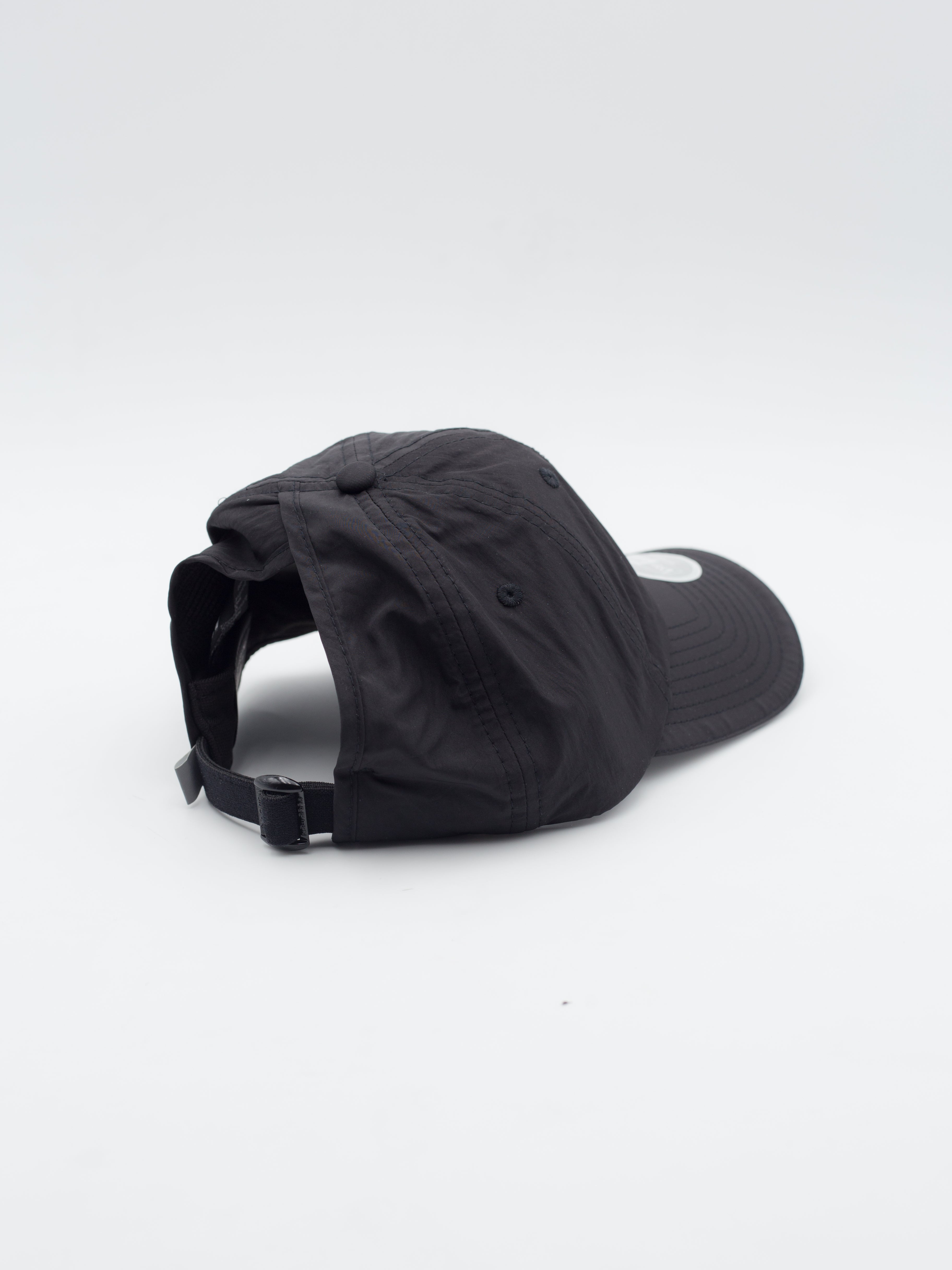 - Gorra estilo dad hat sin estructura, con visera curva y la parte trasera abierta para poder llevar coleta