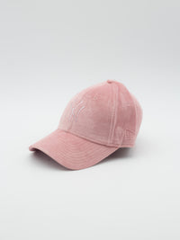 - Gorra tipo dad hat de terciopelo con estructura y visera curva