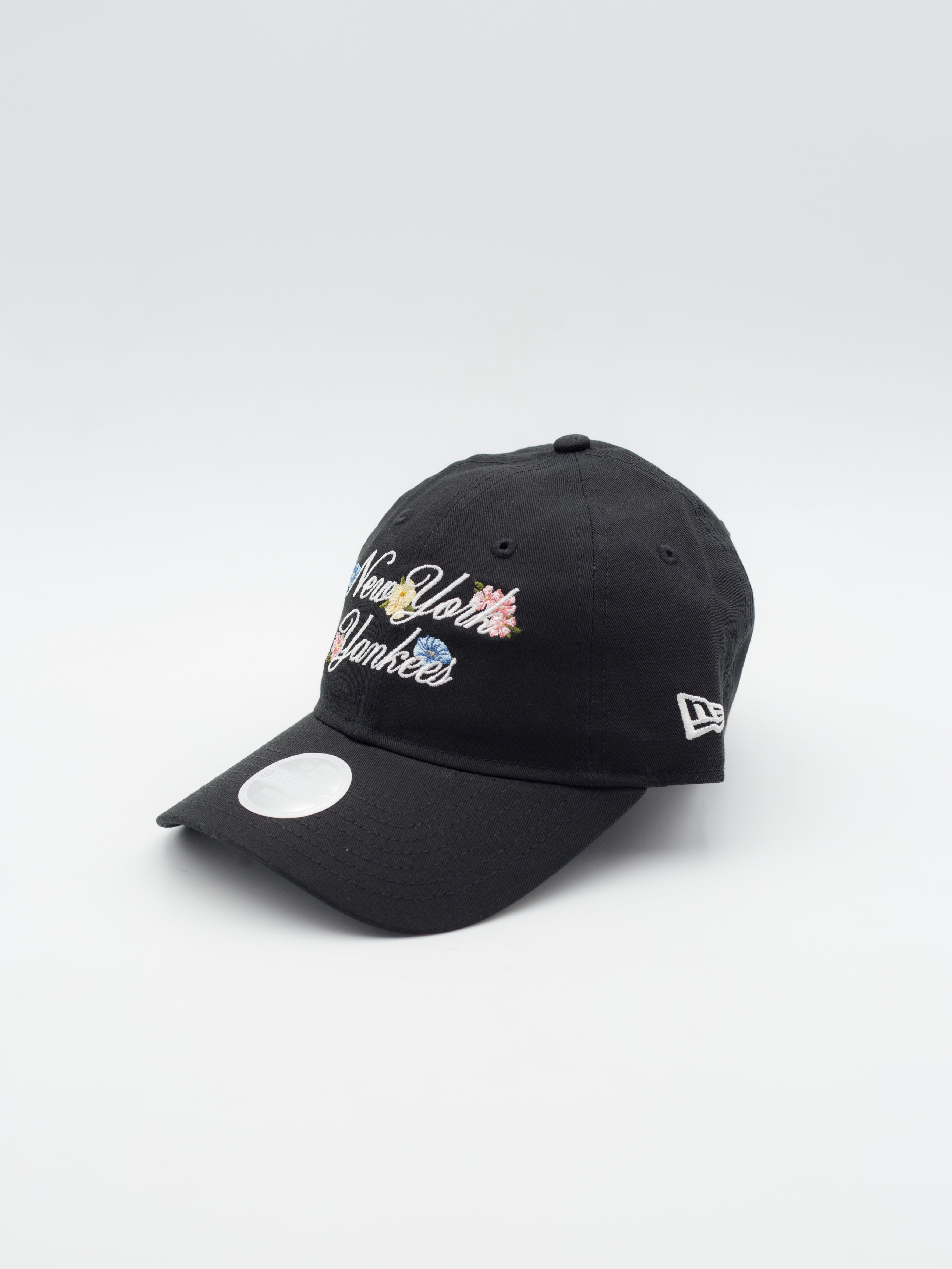 - Script " New York Yankees" bordado en la parte delantera con motivos florales y logotipo "NE" en el lateral