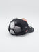 Estampado de calavera y rosa tradicional en el frontal y la firma del artista tatuador estampada en la visera y bordada en el lateral