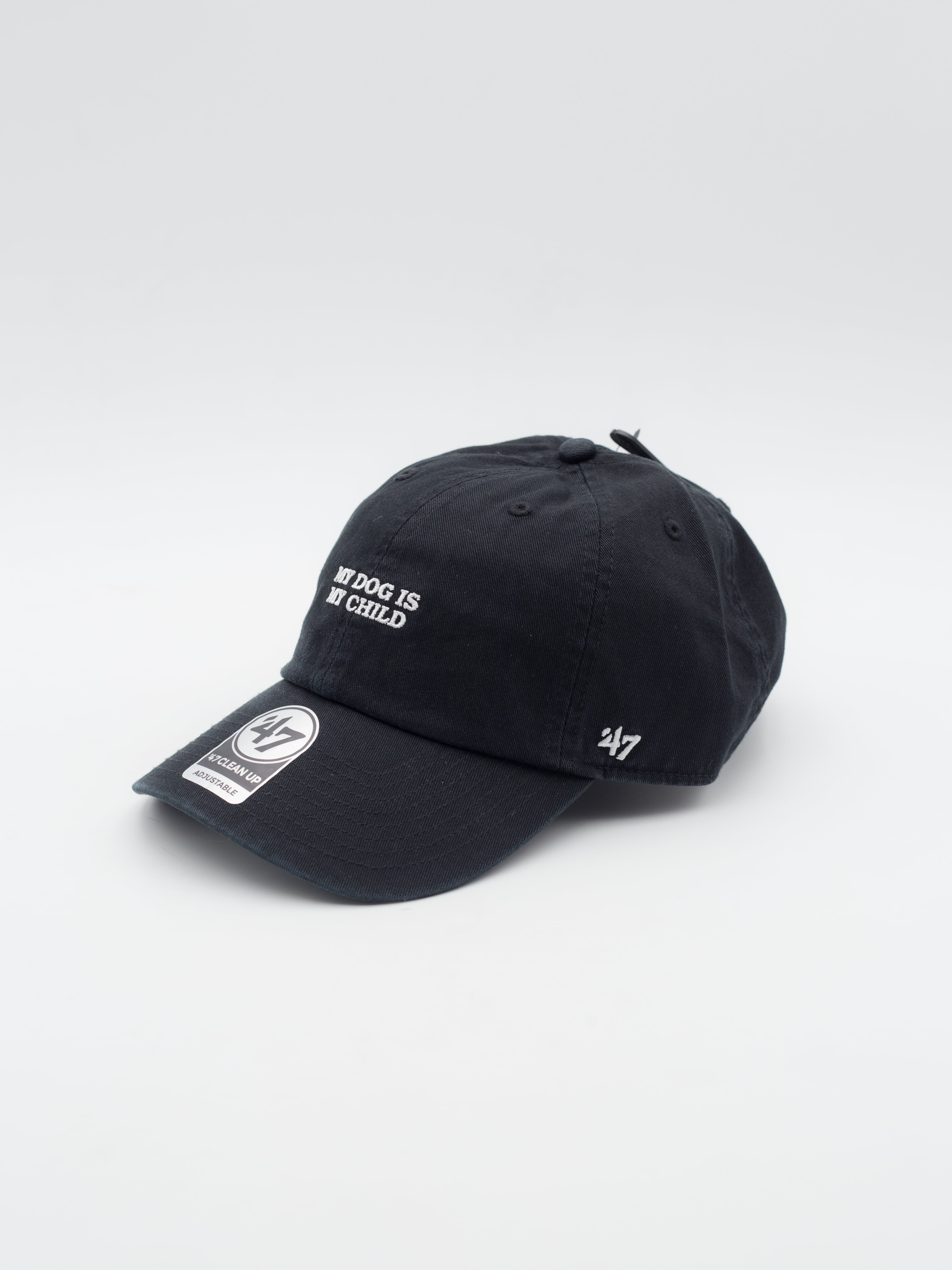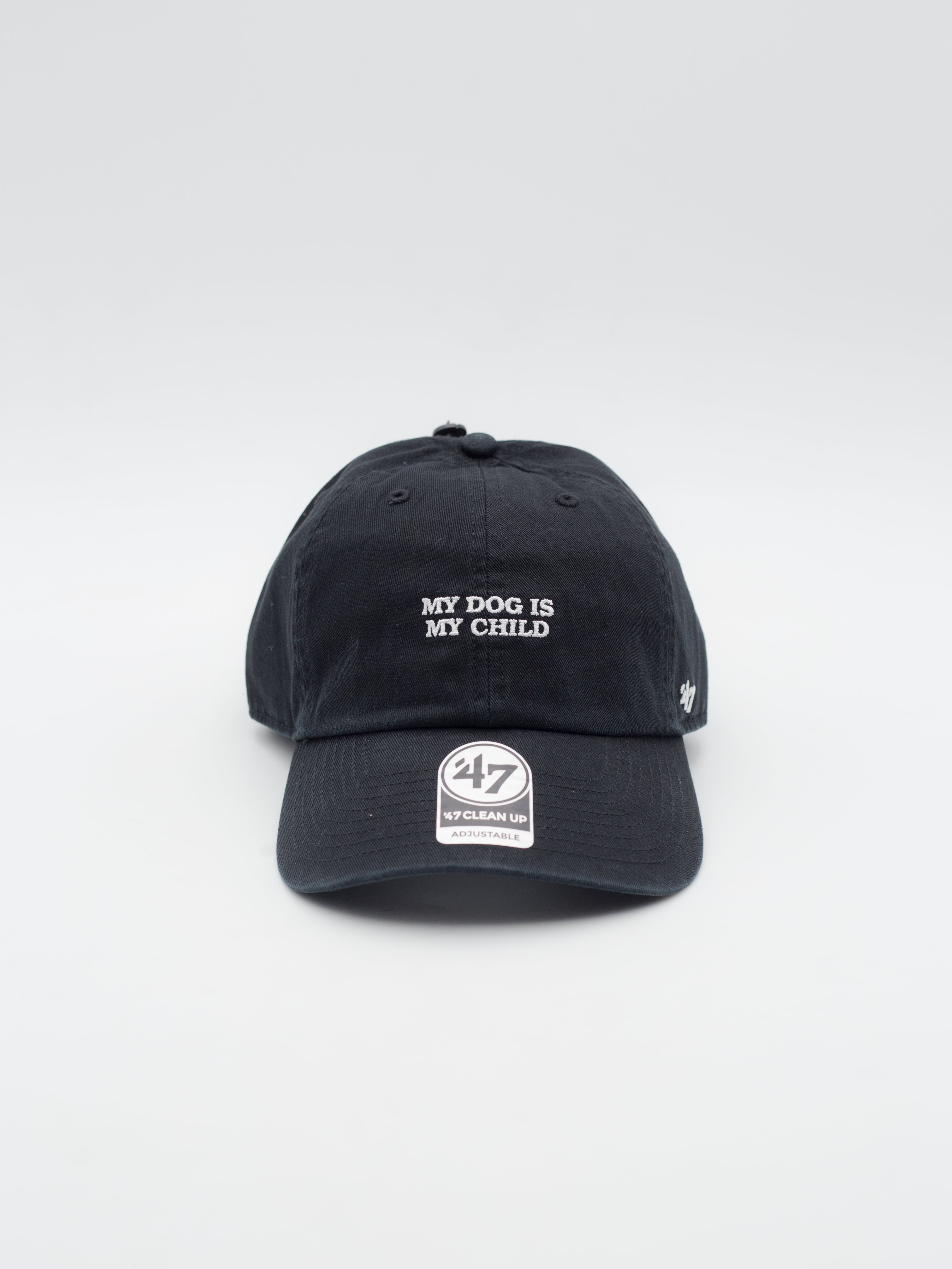 - Script "My dog is my child" bordado en el frontal y 47 Brand en el lateral