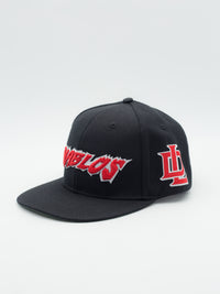 - Script de Los Diablos en el frontal, parche lateral de Hood Series, logotipo bordado en el lateral, bordado 3x3 street league en la parte trasera.