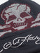 - Diseño de calavera tradicional y firma del tatuador Ed Hardy con brillantes.