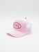 - Frontal y visera de terciopelo rosa y rejilla blanca