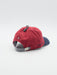 - Corona roja y visera azul marino; sudadero a rayas